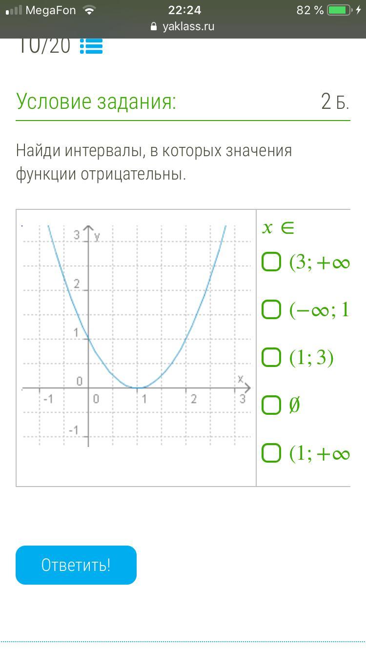 Функция неотрицательна (положительна или равна нулю) на множестве действительных чисел , то есть y≥0 . Отрицательных значений функция не принимает.