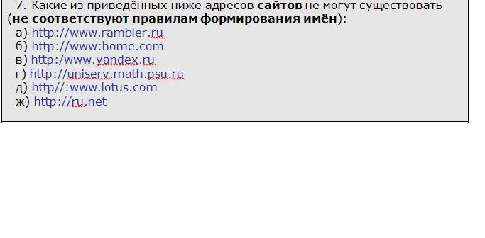 Какие из приведённых ниже адресов сайтов не могут существовать (не соответствуют правилам формирования имён):