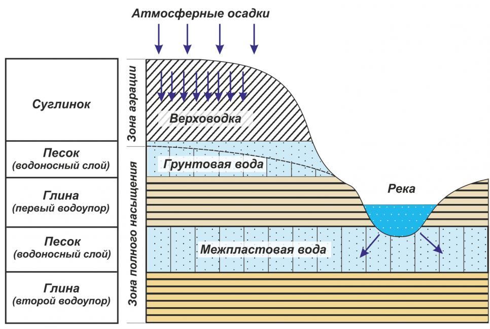 1. Объяснить особенности образования грунтовых вод и межпластовых.