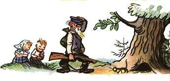 Гуляли как-то раз мы с Машкой в лесу. Собирали грибы, разговаривали , смеялись. Как вдруг Маша как заакричит "Аааа ,Ваня , посмотри на это дерево, там чудище сидит !!". Я испугался, но постарался держать себя в руках. И вдруг вижу как по тропинке идет охотник. Я к нему подошёл и говорю "Дяденька, дяденька, там чудище сидит прогоните его " . Охотник на нас удивлённо взглянул и сказал " Чудище говоришь, ну пойдём посмотрим что там за чудище такое". Он подошел к дереву, заглянул в дырку, достал ружье и хотел уже выстрелить как вылазит из этого дерева маленький , черный котёнок. Вот вам и чудище.