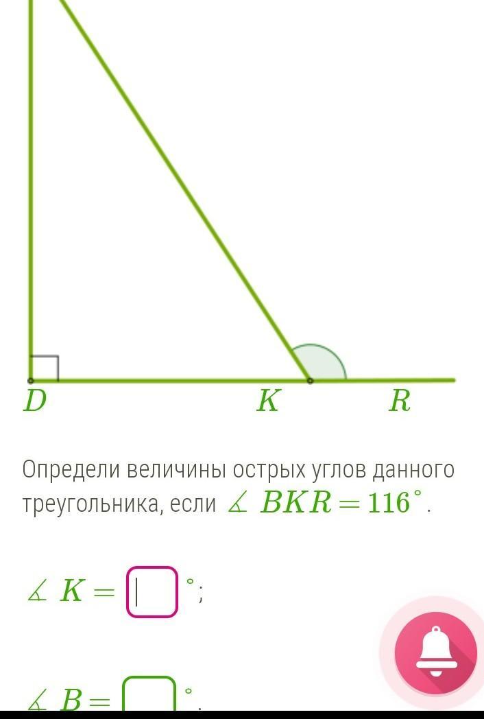 1. Углы ВКR и BKD, являются смежными, их сумма равна 180°, следовательно угол К= 180- 116= 64°