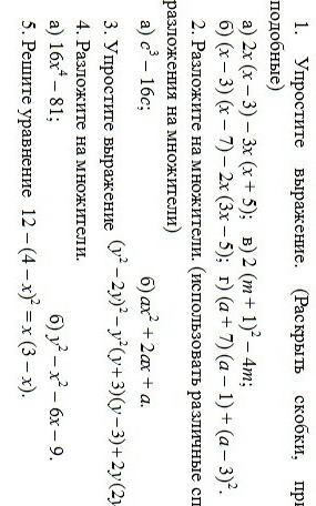 1. а) 2х(х-3)-3х(х+5)=2х^2-6x-3x^2-15x= -x^2-21x; б) (х - 3) (х - 7) - 2х (3х - 5)=x²-3x-7x+21-6x²+10x=21-5x². в) 2(m+1)^2-4m=2m²+4m+2-4m=2m²+2. г) (а+7)(а-1)+(а-3)^2= a^2 - a+7a-7+a^2-6a+9=2a^2+2.