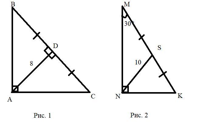 2. В равнобедренном прямоугольном треугольнике к гипотенузе проведена медиана длиной 8 см. Найдите гипотенузу.