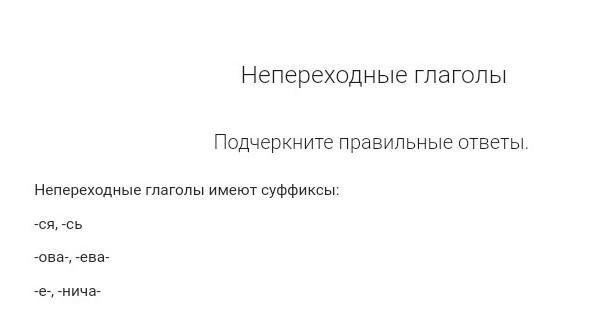 Непереходные глаголы имеют суффиксы: - ся, - сь, - е-, - нича-.