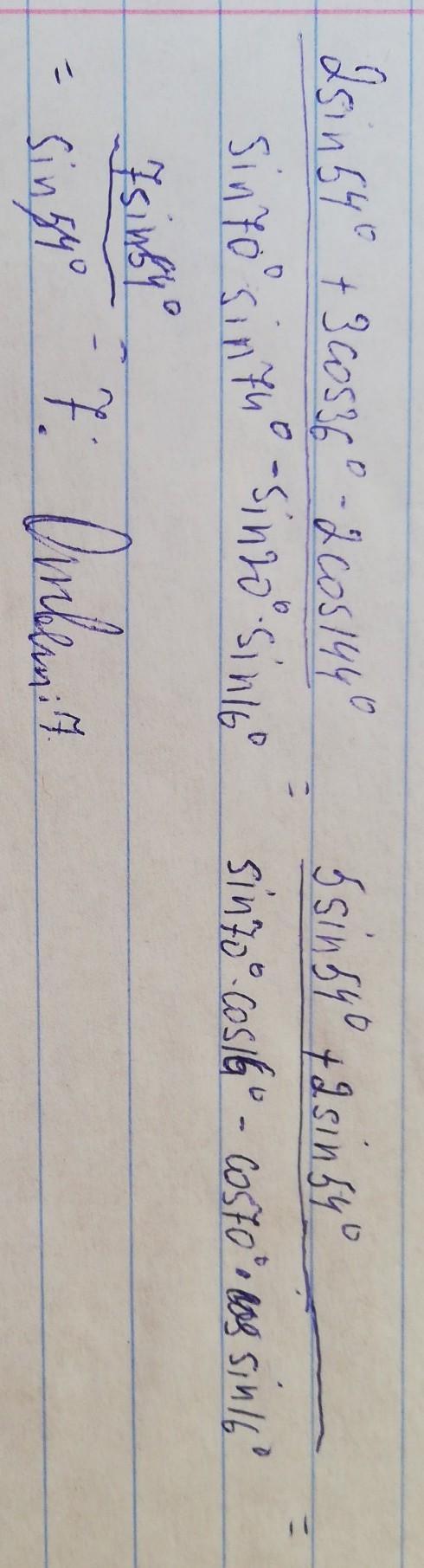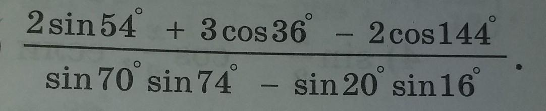 упростите выражение и найдите его значение. 2 sin 54° + 3 cos 36° - 2cos144