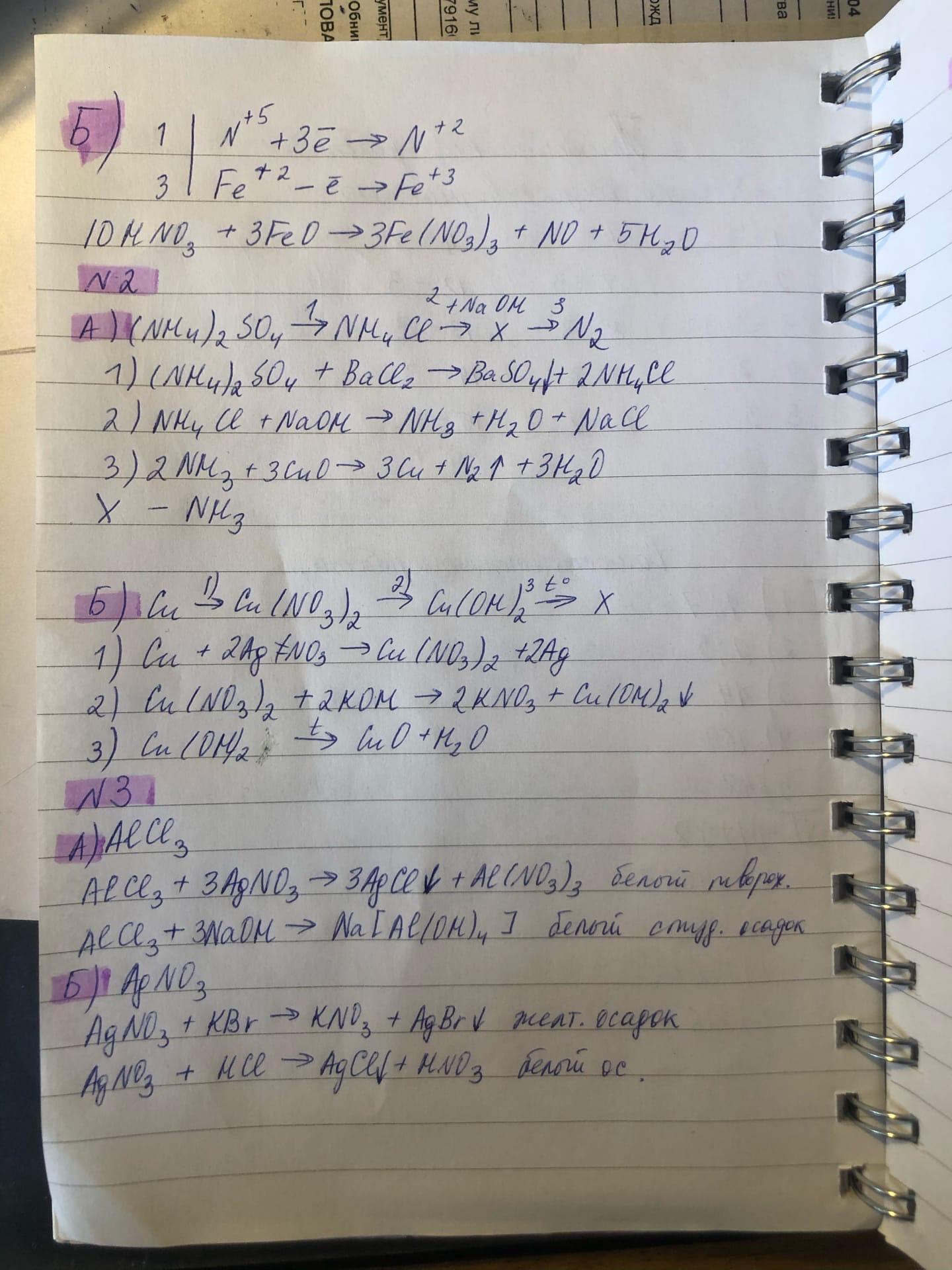 3. A) Используя только реактивы из приведенного перечня, запишите молекулярные уравнения 2-х реакций, которые характеризуют химические свойства хлорида алюминия. Укажите признаки их протекания.