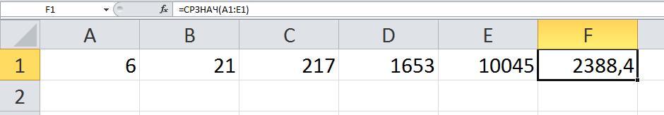 Используя MS Excel, вычисли среднее арифметическое данных чисел.