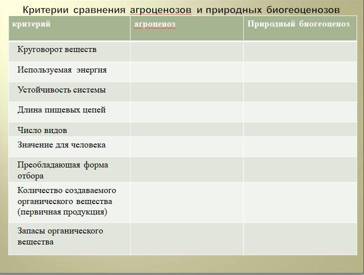таблица по биологии Критерии сравнения агроценозов и природных биогеоценозов ПОМОГИТЕ ПОЖАЛУЙСТА ОЧЕНЬ СРОЧНО
