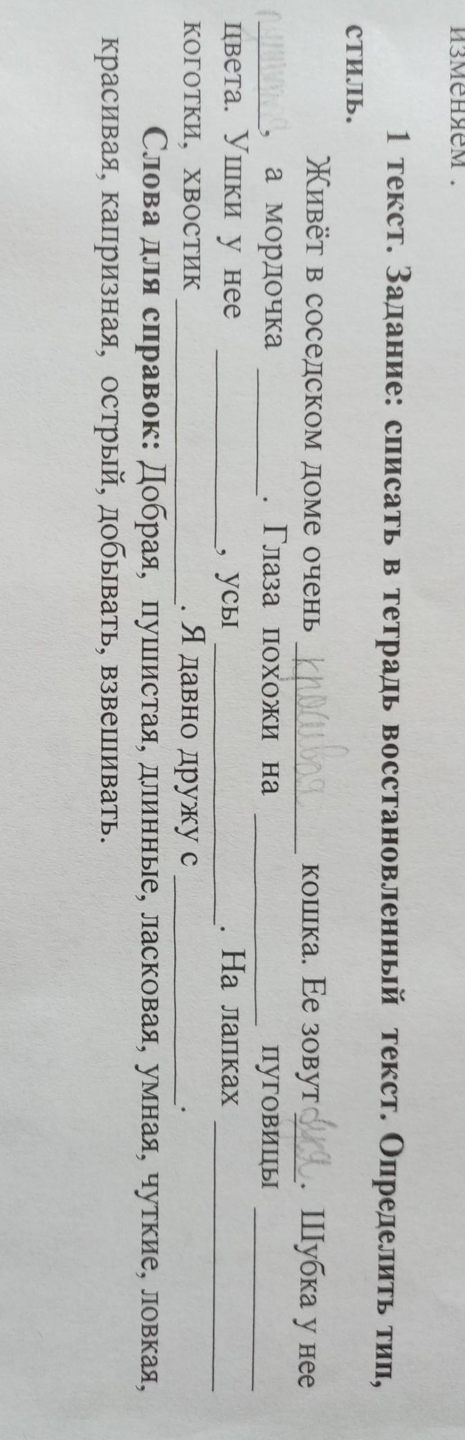 Живёт в соседском доме очень добрая кошка. Ее зовут мурка Шубка у нее пушистая, а мордочка умная. Глаза похожи на большие пуговицы голубова цвета. Ушки у неё острые усы длинные . На лапках острые коготки, хвостик трубой. Я давно дружу с этой кошкой.