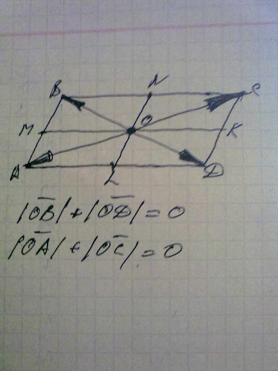 в четырехугольнике ABCD точки M,N,K,L являются серединами AB,BC,CD,AD соответственно прямые MKи LN пересекаются в Oдоказать чтосумма векторов OA+OB+OC+OD=0
