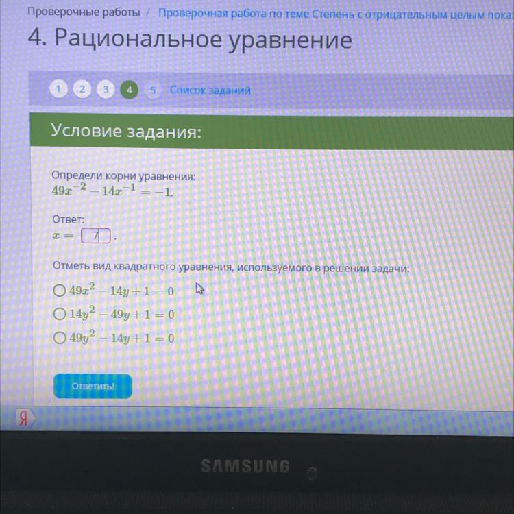 Правильный вариант 49y^2-14y+1=0