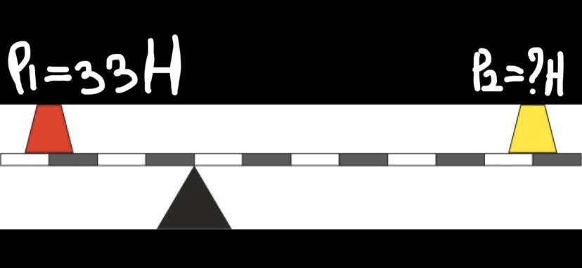ФИЗИКА 7 КЛАСС. На рычаге размещены два противовеса таким образом, что рычаг находится в состоянии равновесия. Вес расположенного слева противовеса равен 1=33Н.