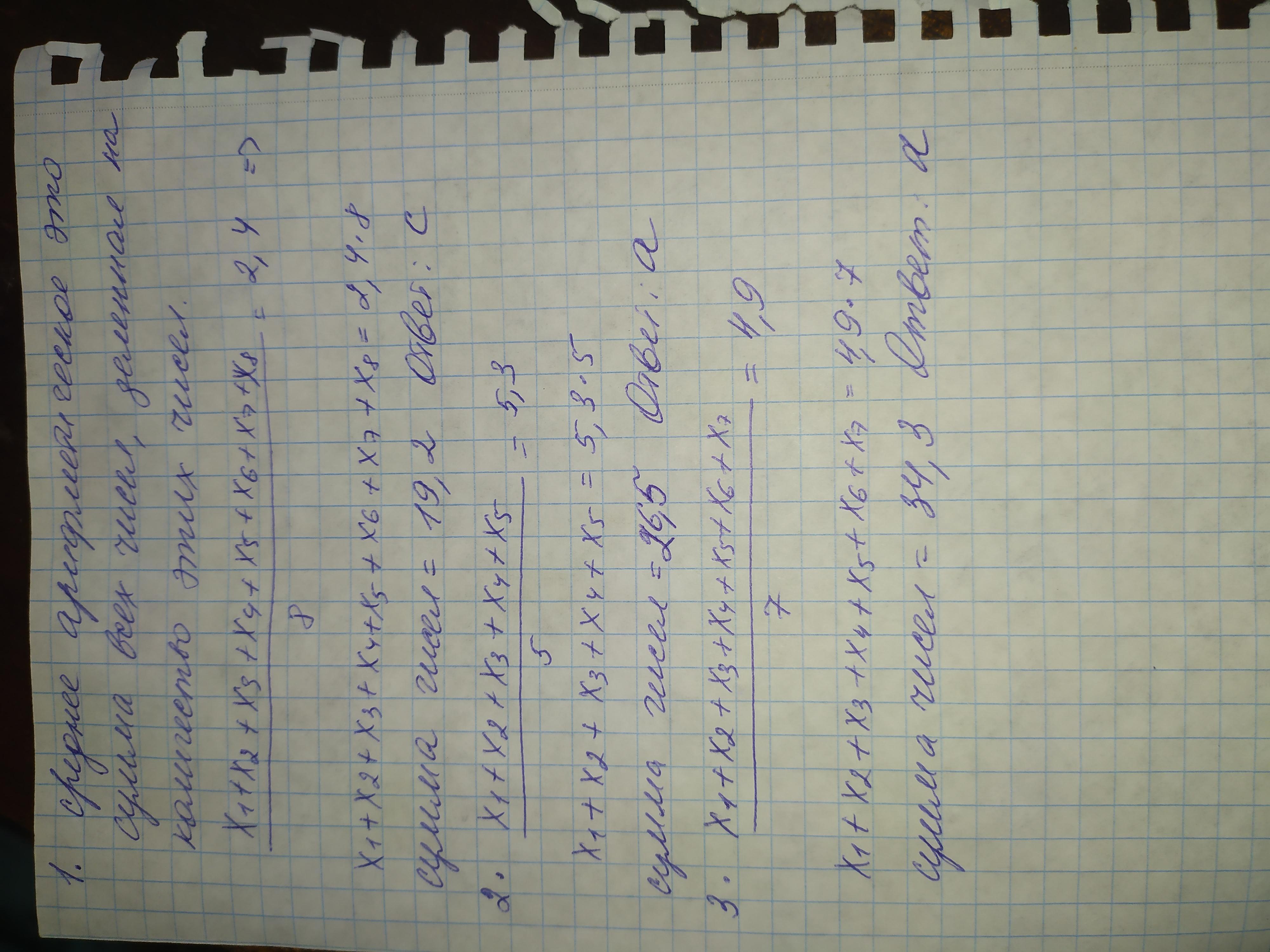 Среднее арифметическое семи чисел равно 4,9. Найдите сумму этих чисел.