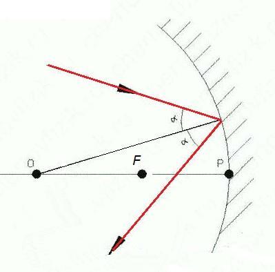 начертите ход луча, падающего на поверхность вогнутого зеркала