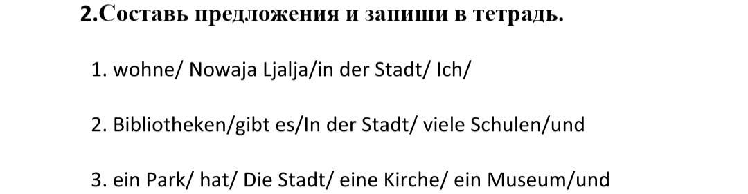 2. In der Stadt gibt es viele Schulen und Bibliotheken.