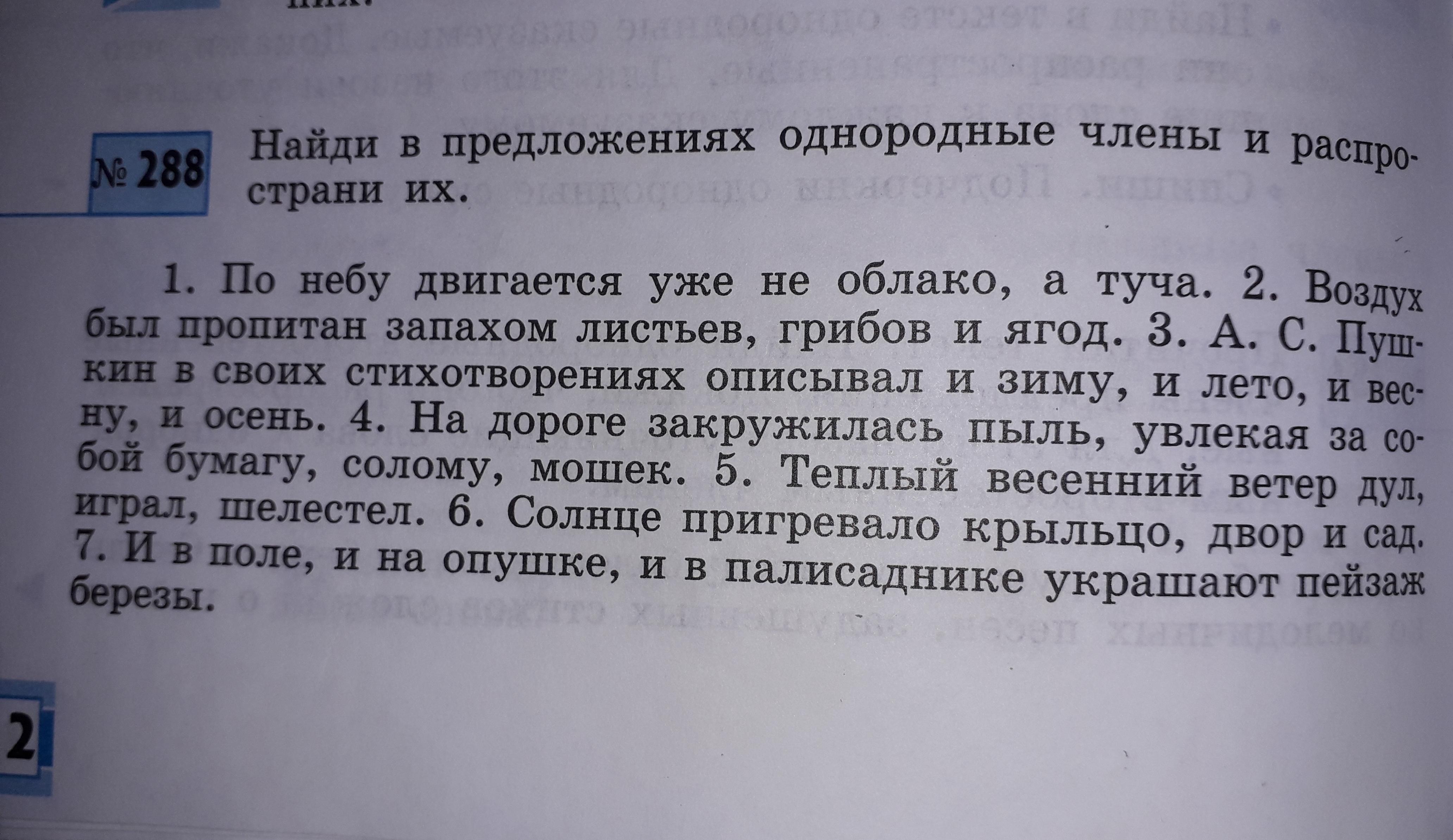 Спишите , найдите в предложениях однородные члены предложения и распространите их.