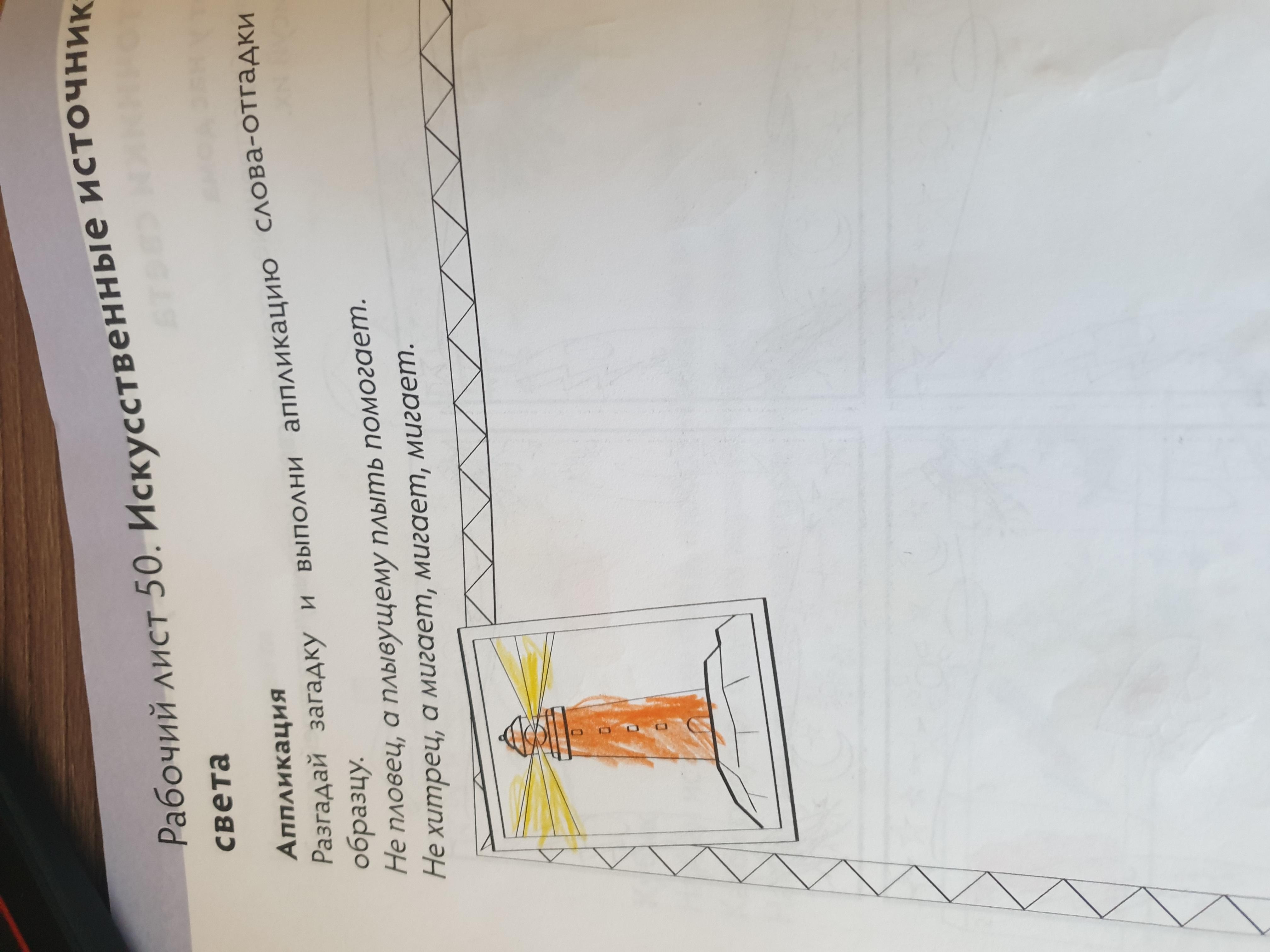 Помогите, что нужно делать? Просто написать что это маяк, или вырезать с бумаги и клеить на лист?