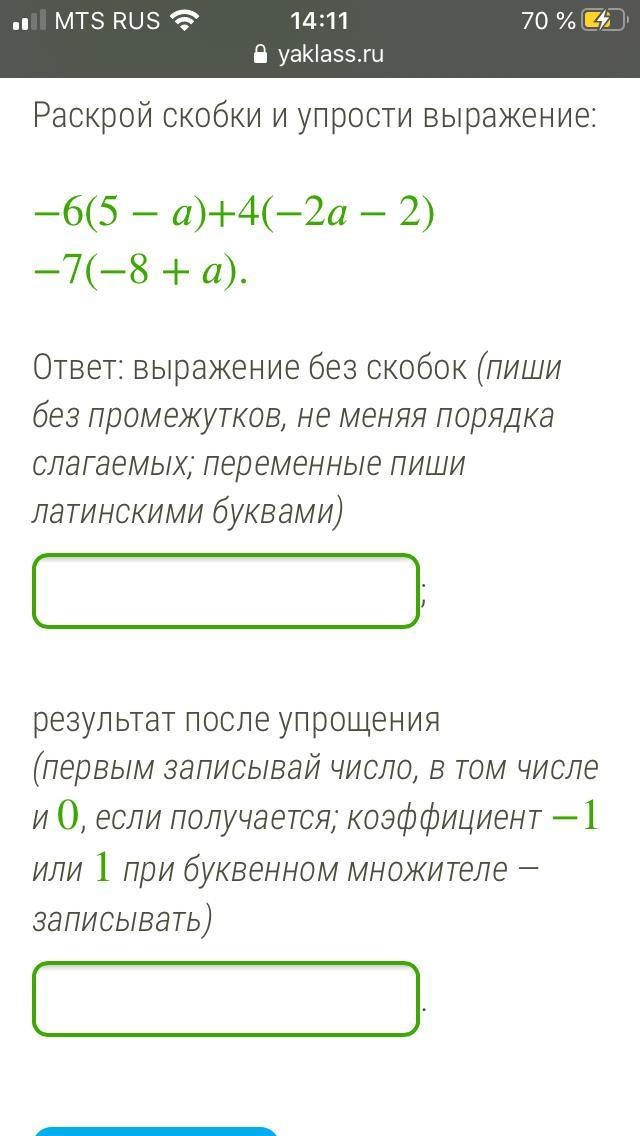 -7(-8+а)=-7×-8=два минуса даёт плюс и так 56