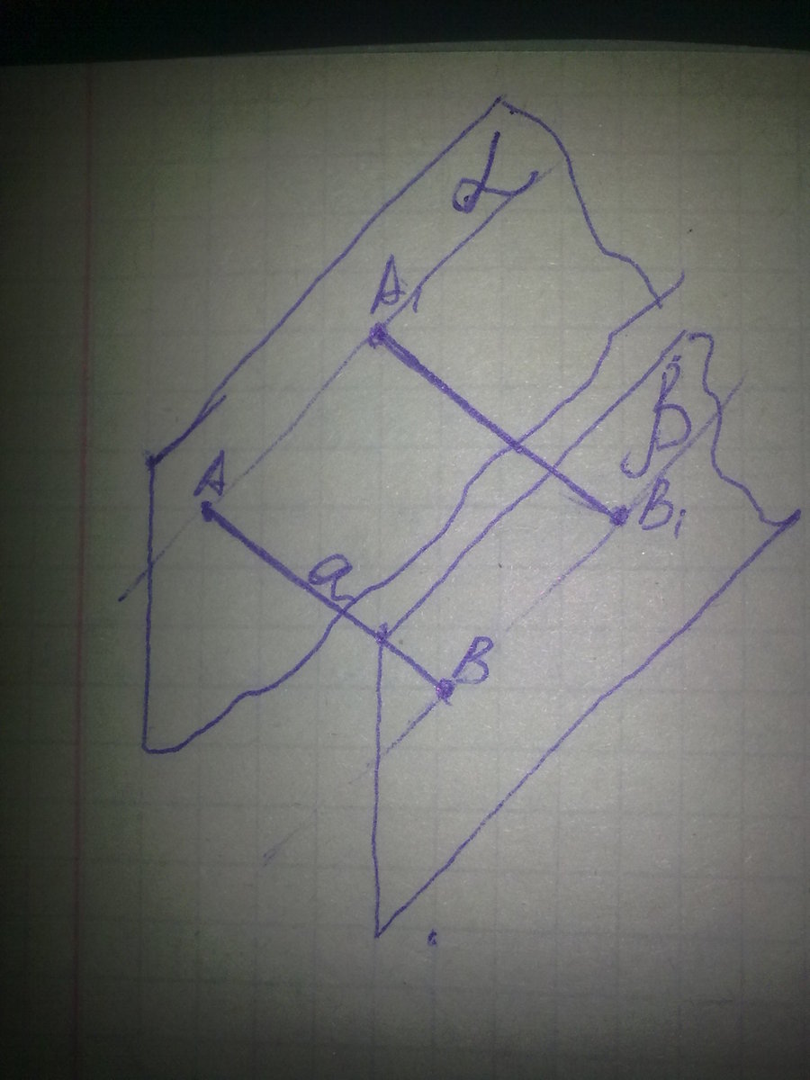 судя по условию о параллельности альфа и бета, а также а и а1 , то следует АА1=ВВ1, АВ=А1В1 и получаем параллелограмм у которого уголы А1АВ=А1В1В и АА1В1=АВВ1 из изложенного отмеряем истроим