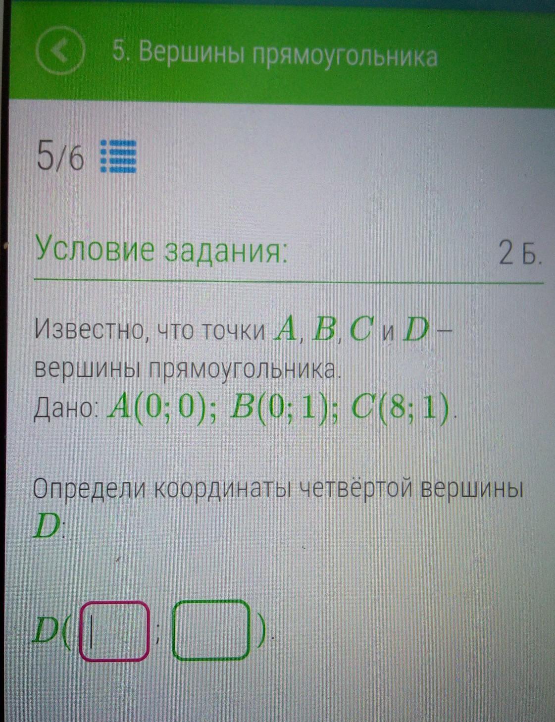 координата точки D (8;0)