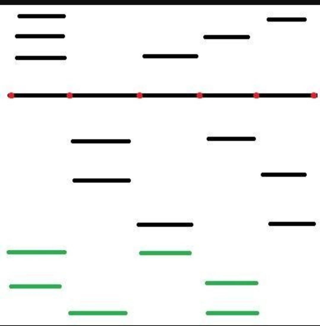 9 задача - Вася отметил на прямой 6 точек. Сколькими способами он может выбрать пару отрезков с концами в этих точках так, чтобы они не накладывались (даже концами)?