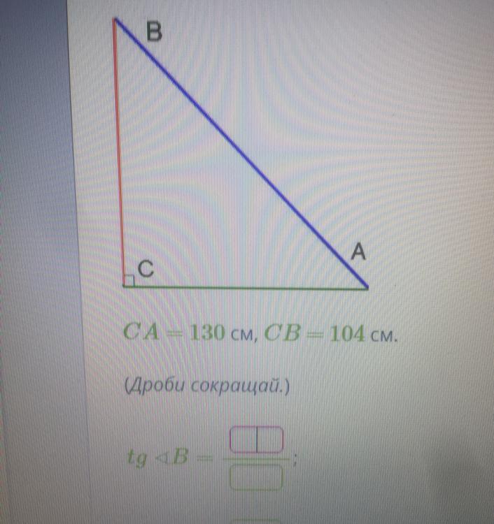 так как СА=130 а СB=104 то Тангенс угла B равна 130/104=1.25
