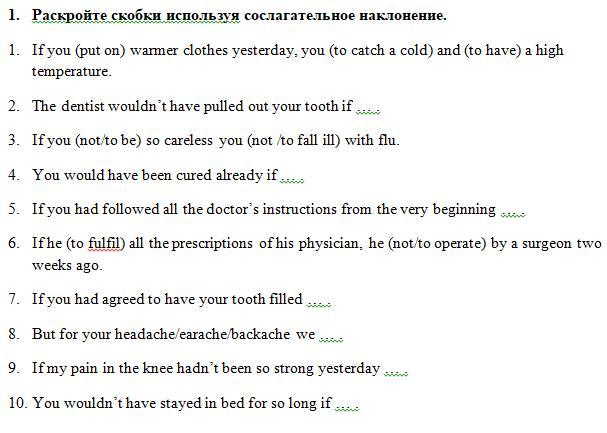 1. If you had put on warmer clothes yesterday, you wouldn't have caught a cold and (wouldn't have) had a high temperature.
