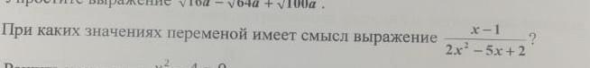 При Х€(-∞;0,5) ∪(0,5; 2) ∪(2;+∞) выражение имеет смысл