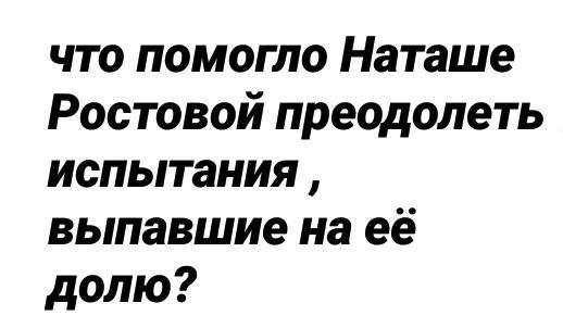 Уйдя в себя, она "испытывала особенное чувство отчуждения от лиц своей семьи". И тут происходит что-то неожиданное. "Какое там у них несчастие..?" Прежний ритм пассивной созерцательной опустошенности героини вдруг исчезает, уступая место всплеску деятельной, живой энергичности. "Вдруг как электрический ток пробежал по всему существу Наташи", словно что-то ударило ее в сердце. Она почувствовала страшную боль, и в то же время ощутила "освобождение от запрета жизни, лежащего на ней". В результате она смогла забыть себя и свое горе. Наташа снова стала жить для других. Она поняла, что близкие нуждались в ее любви, неутомимой деятельности и неуемной жажде жить. Автор выражает это словами: "Графиня сжала руку дочери, закрыла глаза и затихла на мгновение ".