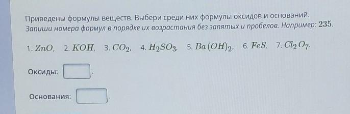 Оксиды: ZnO, CO2, Cl2O7, H2SO4