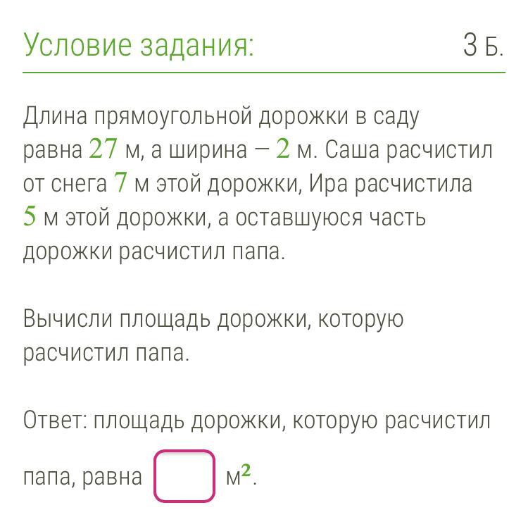 Ответ: площадь дорожки, которую расчистил папа равна 36м²
