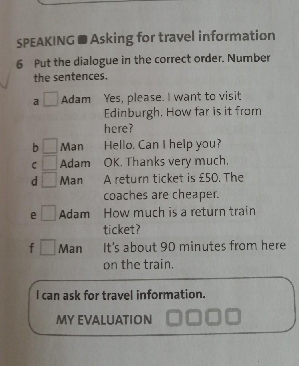 Put the dialogue in the correct order. Number the sentences.