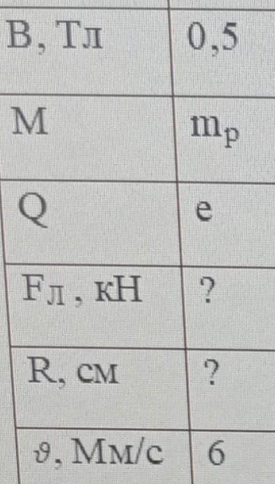 В магнитное поле с индукцией В влетает заряженная частица с массой m и зарядом q. Под действием силы Лоренца Fл она описывает окружность радиусом R. Скорость частицы v.