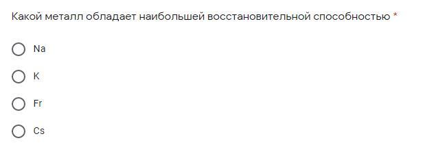 Помогите , пожалуйста решить тестовый вопрос по химии.