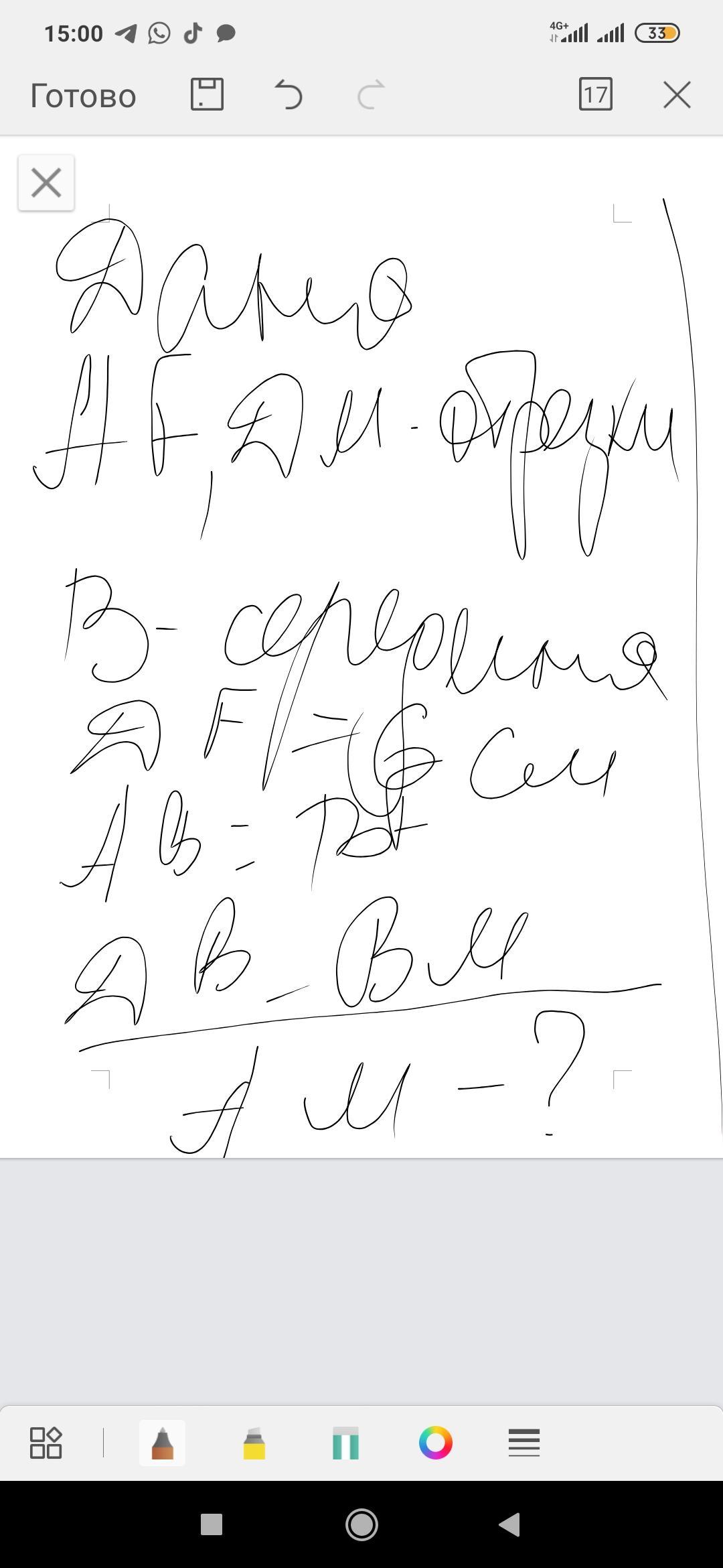 2. Отрезки AF и DM пересекаются в точке B так, что AB=BD , FB=BM. Найти сторону AM, если известно, что DF=6 см. (с дано и рисунком)