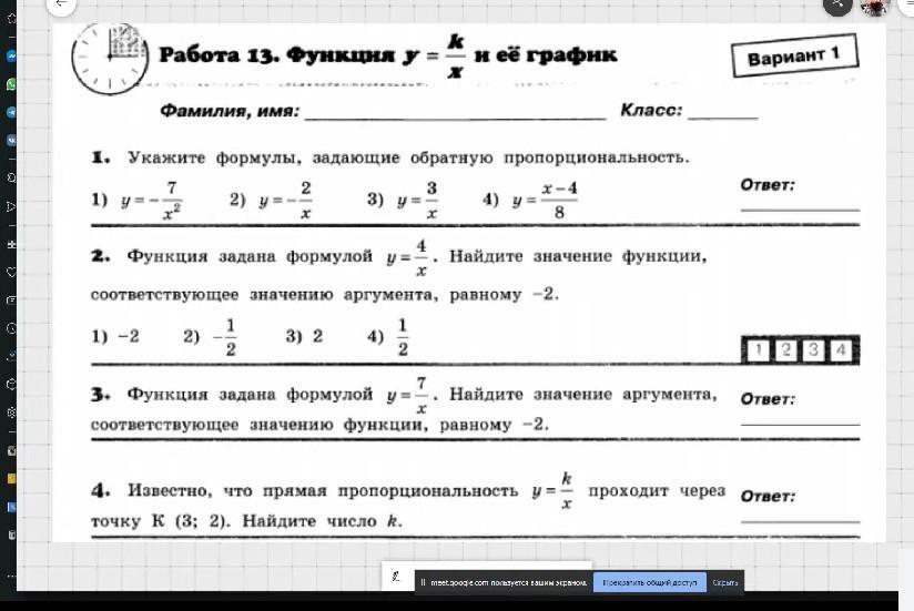 работа 13. функция y=k/x вариант 1. помогите плз​