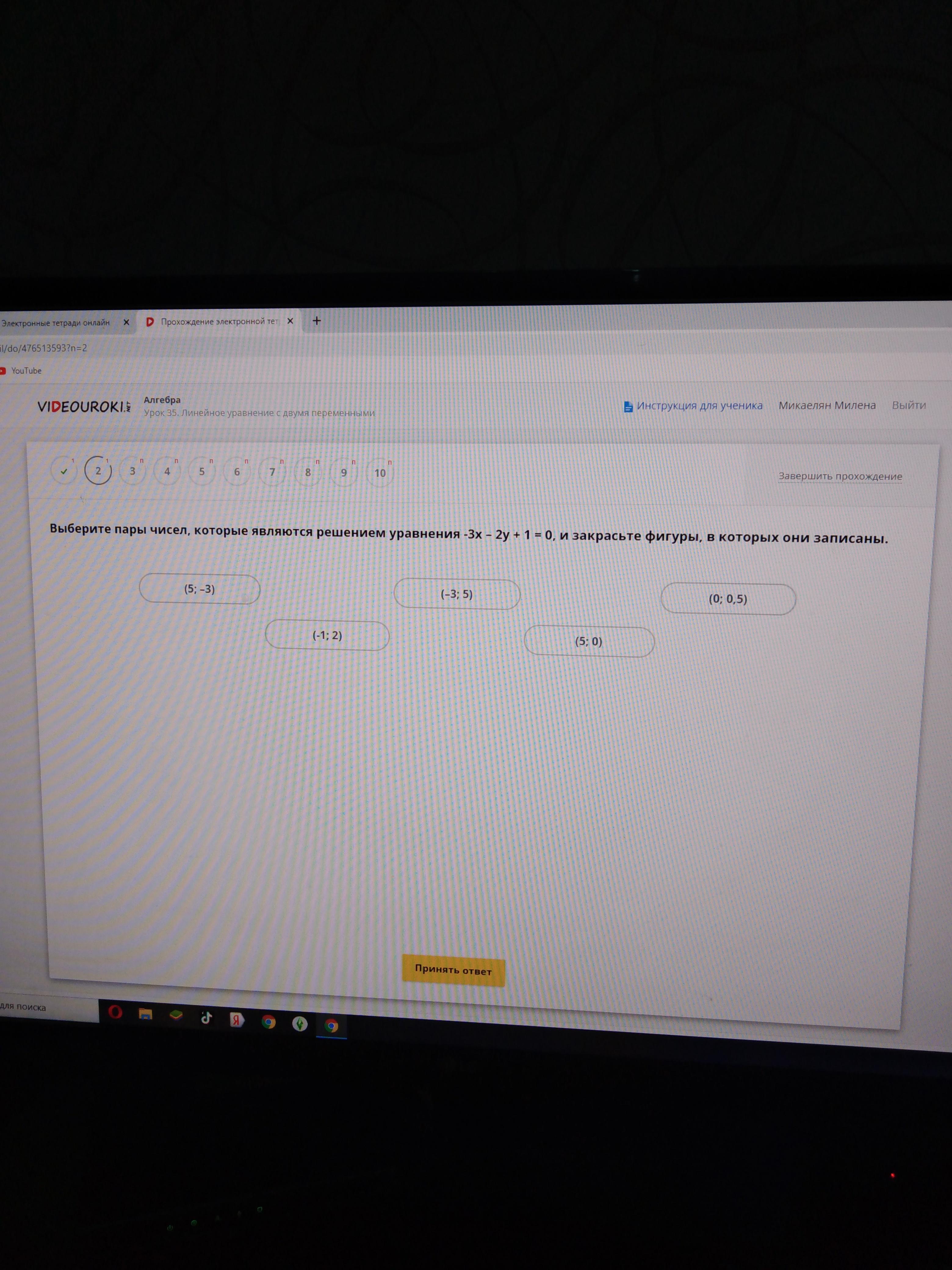 Выберите пры чисел, которые являются решением уравнения - 3x-2y+1=0, и закрасьте фигуры , в которых они записаны.
