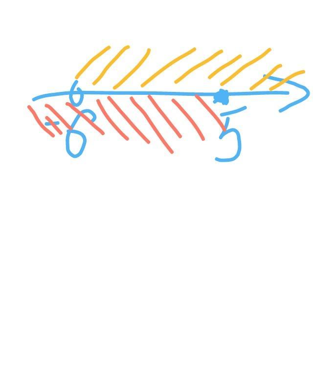 біля -6 кругла дужка, тому що знак нерівності строгий ( > ); біля 5 квадратна дужка, тому що знак нерівності не строгий ( <= )