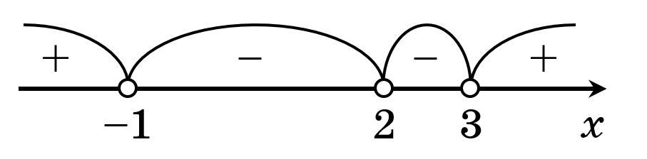 Имеем неравенство высокого порядка. Решим его методом интервалов.