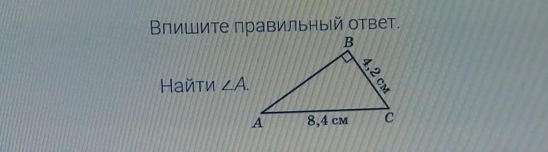 sinA=BC/AC=4,2/8,4=1/2⇒∠A=30°