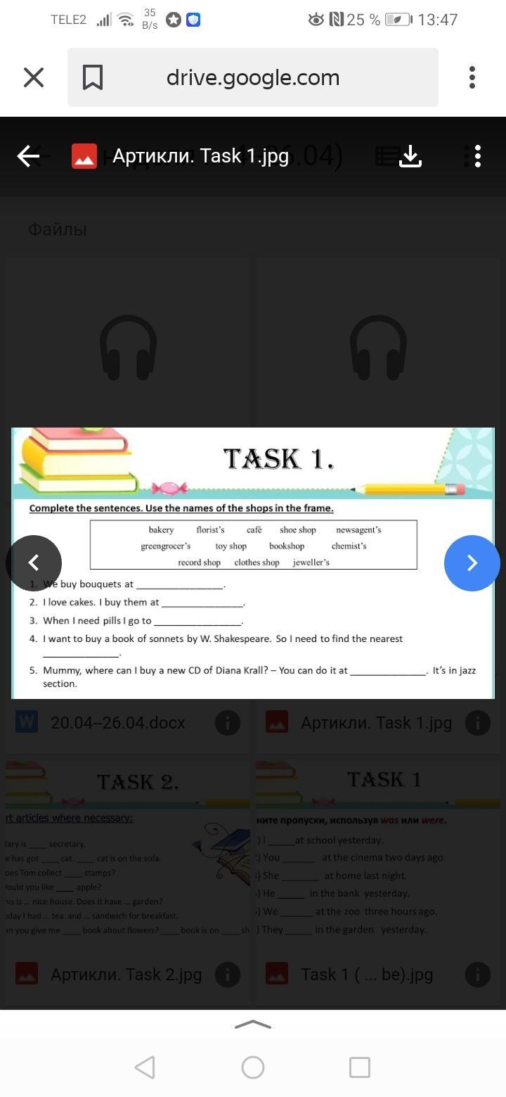Ответ:1)shoe shop, 2)bakery, 3)chemists, 4)bookshop, 5)record shop