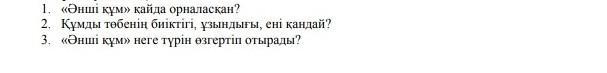 1.Әнші құм-Іле өзенінің аңғарын бойлай орналасқан Үлкен Қалқан тауы және Кіші Қалқан тауы етегіндегі құмды төбе.