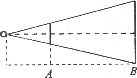 Проектор полностью освещает экран A высотой 90 см,расположенный на расстоянии 300 см от проектора(смотрите рисунок).На каком наименьшем расстоянии(в сантиметрах)от проекора нужно расположить экран B высотой 270 см,чтобы он был полностью освещён,если настройки проектора останутся неизменными?