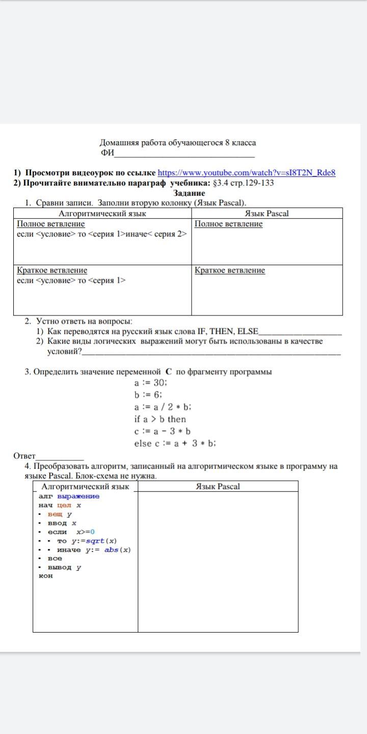 - if — если, then — тогда, else — иначе