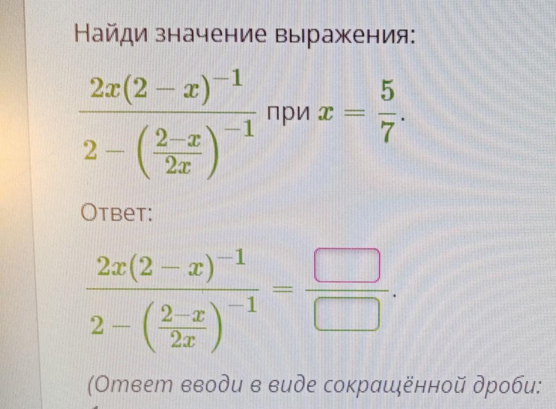 2x(2-x)⁻¹ / ( 2 -( (2-x)/2x )⁻¹ ) при x =5/7