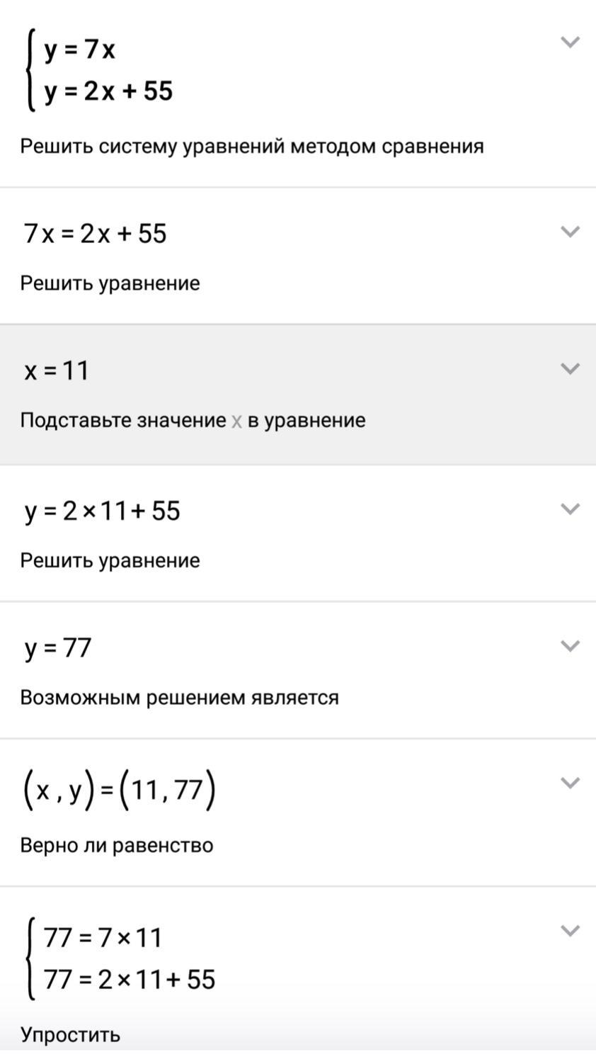 Задание 9: Чему равны координаты точки пересечения графиков функций y = 7x и y = 2x + 55? Выберите один из 4 вариантов ответа: