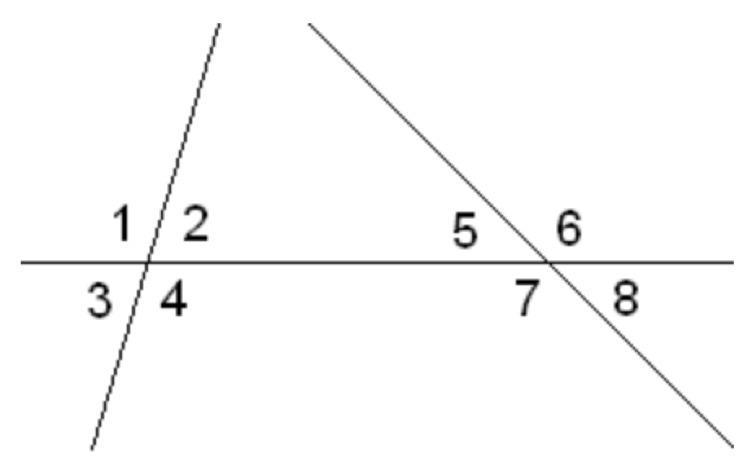 Дано: ∢1=136°,∢5=44°. Вычисли все углы.
