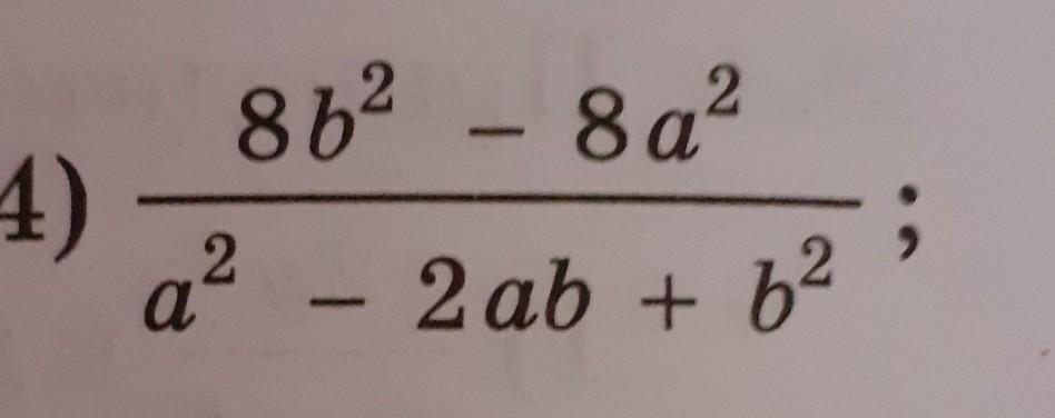 8(в-а)(в+а)/(а-в)²=-8(а-в)(а+в)/(а-в)²= скоротимо і отримаємо:-8(а+в)/а-в