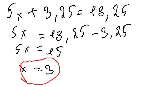 5х + 3,25 = 18,25