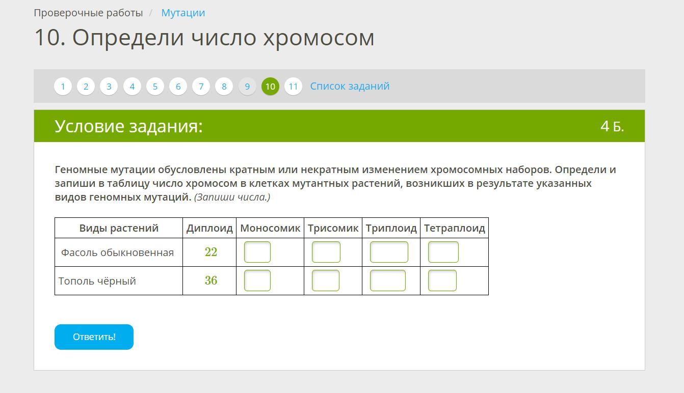 Фасоль моносомик-21, трисомик-23, триплоид 66, тетраплоид 88